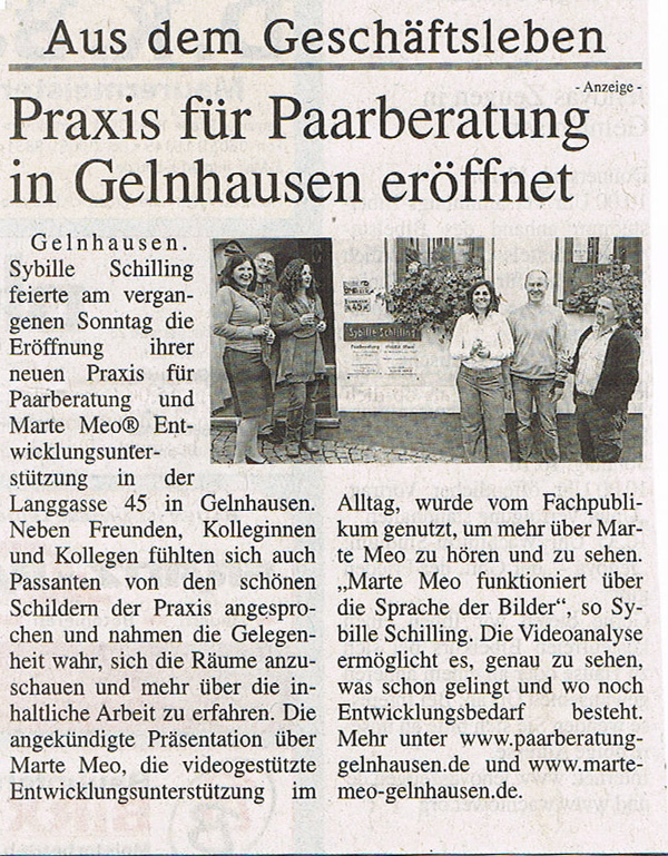 Am Sonntag dem 09. Oktober 2011 fand meine Praxiseröffnung statt. Dazu erschien im Gelnhäuser Boten folgender Aritkel.
